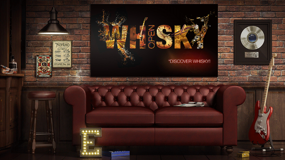 After the design of Key Visual was finished and approved, I started thinking about a copyline. It should contain “call to action” and drive the shopping intention. After some long discussions, I and the team decided to choose “Discover Whisky”. This is what the final result is!